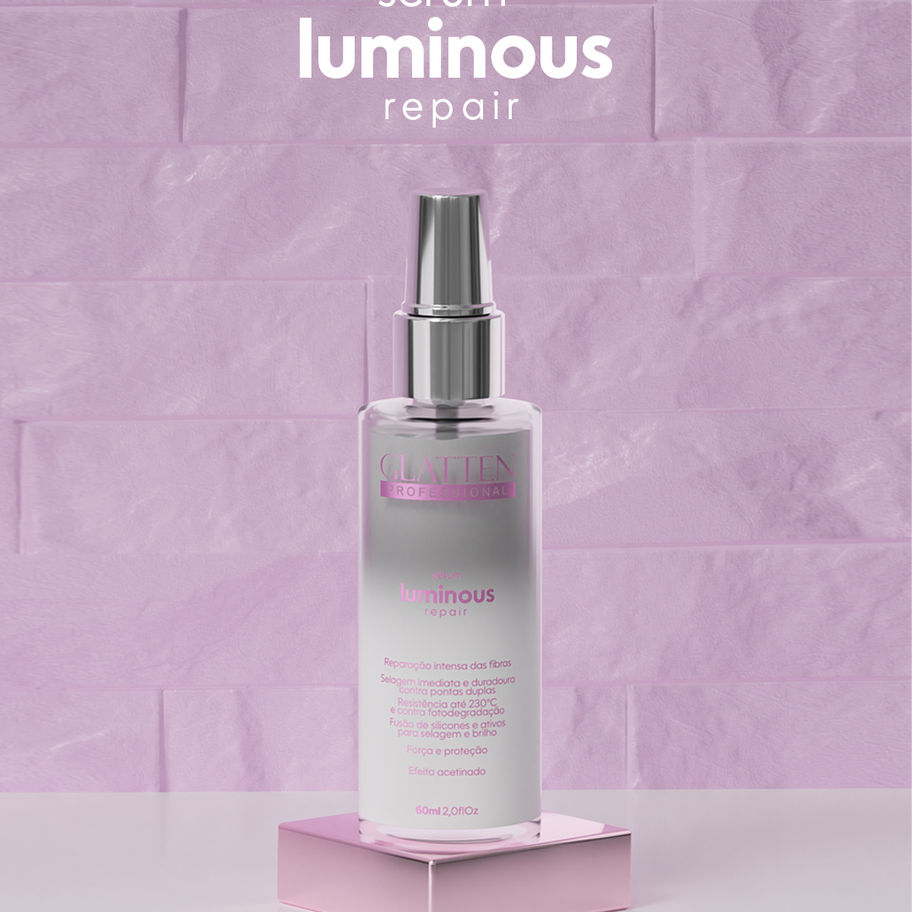 Aplicar el Sérum Reparador Luminoso en las palmas de las manos y distribuir uniformemente desde el largo hasta las puntas.